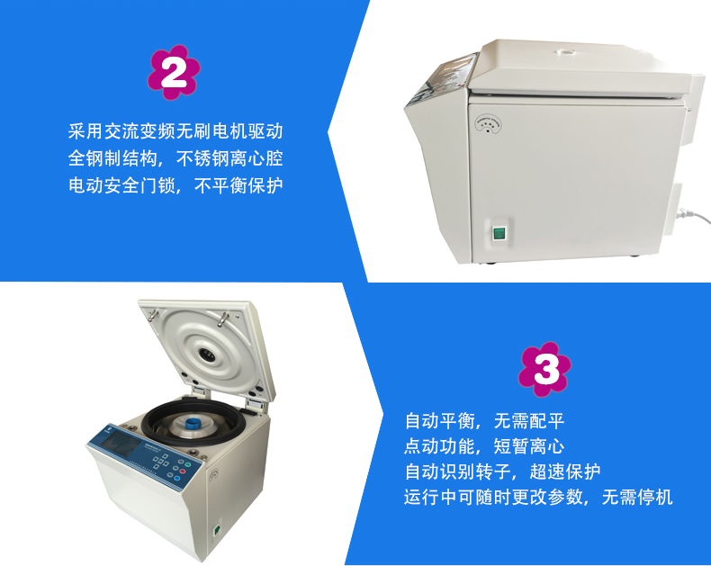 ■ 自動平衡,無需配平,點動功能,可短暫離心