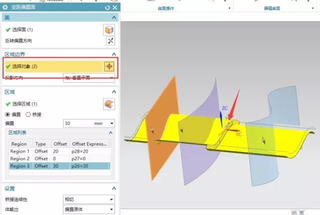 選擇黃色的面為被偏執(zhí)的面,然后選擇藍色的面為區(qū)域邊界