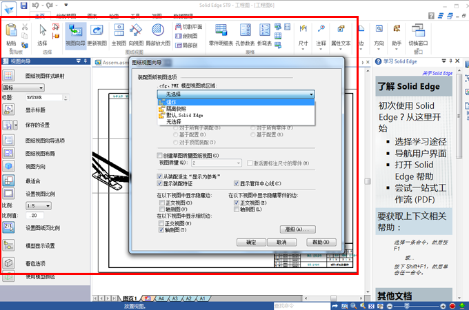 在圖紙視圖向?qū)нx項卡中選擇剛剛保存的爆炸顯示配置