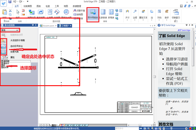 添加零件明細(xì)表,注意在屬性列表中選擇國標(biāo)。