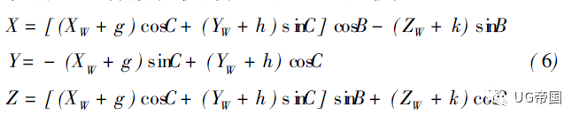 式中, XW、YW 和 ZW 分別代表工件坐標(biāo)系下刀尖點(diǎn)的X、Y 和 Z 坐標(biāo)值。