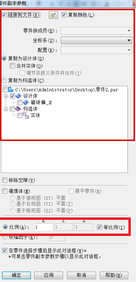 1.新建空白零件圖檔,選擇剪切板零件副本命令,選擇需要縮放的模型文件,彈出如下窗口。