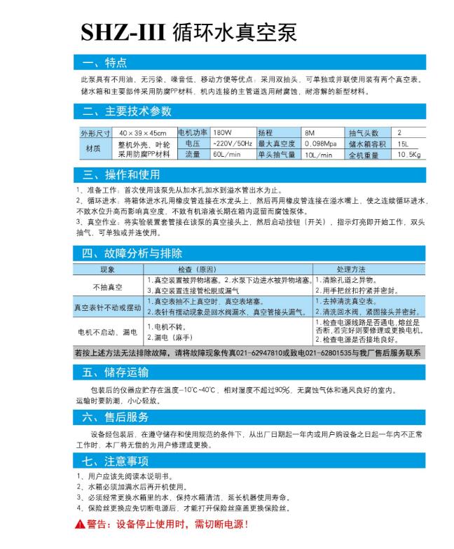 SHZ-III參數(shù):