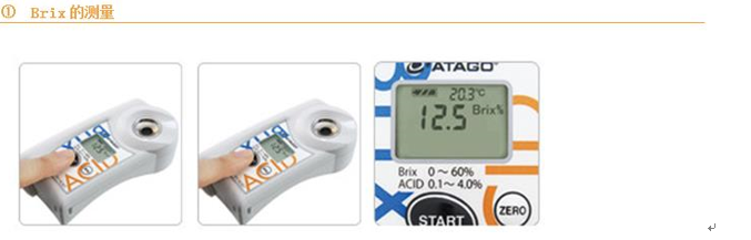 為了方便更多的農(nóng)業(yè)、水果行業(yè)的客戶快速檢測糖酸比,提供更高的測量服務(wù)和更低的價格。讓跟多的農(nóng)業(yè)和水果行業(yè)客戶認(rèn)識到不僅僅需要檢測糖度,還需要檢測酸度,最合適的糖酸比才是評價水果的最好指標(biāo)。ATAGO(愛拓)研發(fā)了這款新的糖酸一體機,不僅可以同時檢測水果的糖酸比,而且不需要繁雜的操作方法和酸度測定試劑。PAL-BX/ACID1 柑橘糖度一體機,又稱為柑橘糖酸比檢測儀、檸檬酸糖酸度一體機可以用來測量柑橘、橙子、蘋果等水果的糖度和果酸含量,并將其酸度以檸檬酸的多少來表示。
