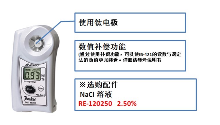 PAL-SALT Mohr 迷你數(shù)顯鹽度計(jì),又稱為腌菜汁鹽度計(jì),醬菜汁含鹽量較高需要稀釋,PAL-SALT Mohr鹽度計(jì)是一款環(huán)保型、高性價(jià)比的鹽度測(cè)量工具。