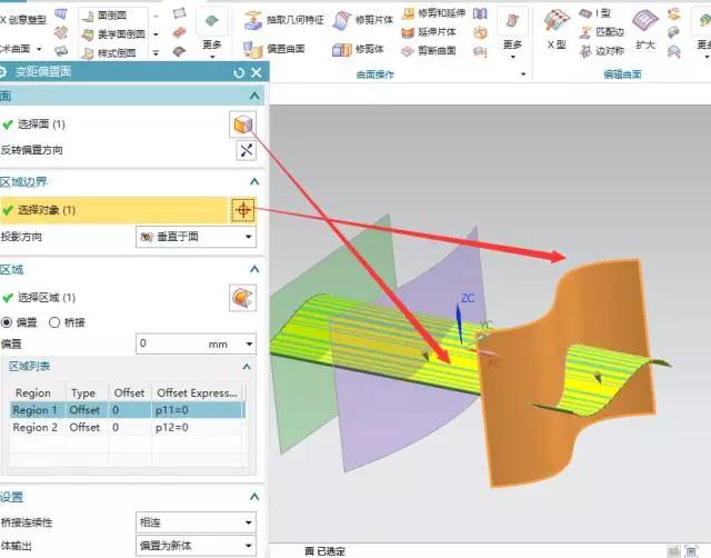 選擇黃色的面為被偏執(zhí)的面,然后選擇藍色的面為區(qū)域邊界