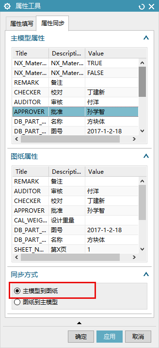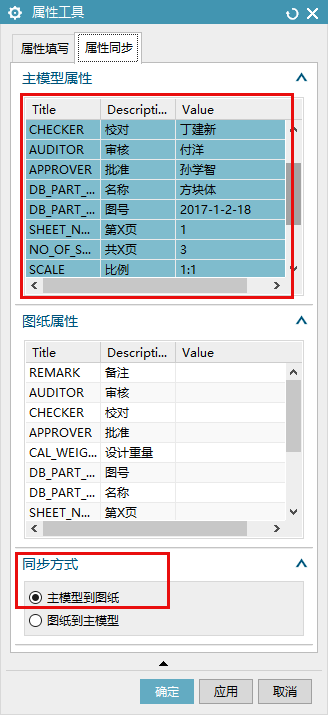 點擊屬性工具→屬性同步→應(yīng)用。圖紙屬性繼承主模型屬性。