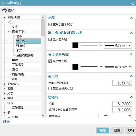 1、點(diǎn)擊:菜單→首選項(xiàng)→制圖,然后選擇:公共→直線/箭頭→箭頭線。