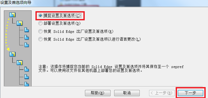 1.打開設(shè)置及首選項向?qū)Вㄩ_始菜單—Solid EdgeST10—Solid Edge工具—設(shè)置及首選項向?qū)В?/span>