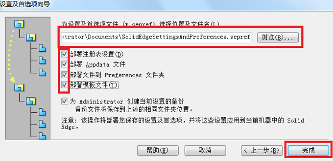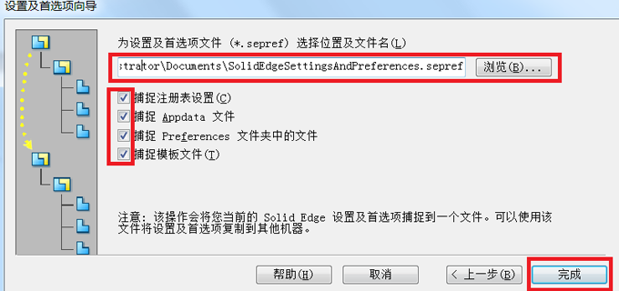 當我們重裝軟件或者使用別人電腦中的Solid Edge軟件時,并不需要重新設(shè)置環(huán)境變量,我們可以通過Solid Edge工具中的“設(shè)置及首選項向?qū)А惫δ?,將設(shè)置好的環(huán)境變量保存再加載到所需要的電腦上。這樣我們便可以輕松實現(xiàn)環(huán)境變量的復制,避免重復設(shè)置。