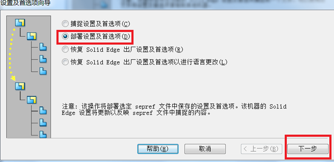 4. 加載配置。在“設(shè)置及向?qū)А敝羞x擇“部署設(shè)置及首選項”。
