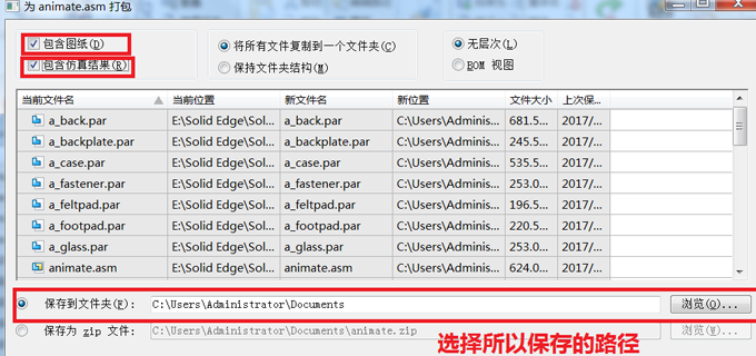 3.按需求選擇打包是否包含圖紙和仿真結(jié)果,并確定保存的路徑。
