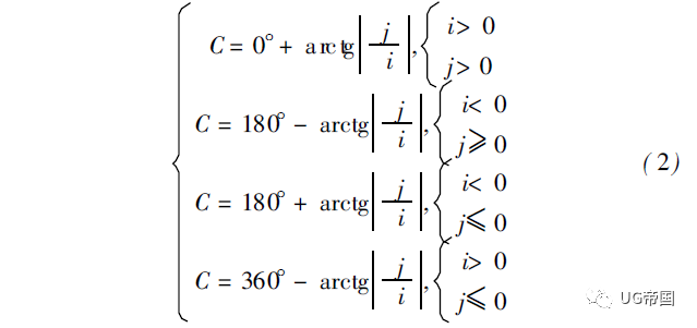 式中, i、j和 k 代表刀軸矢量在 X、Y 和 Z 軸方向上的 分量。C 角的計(jì)算公式為: